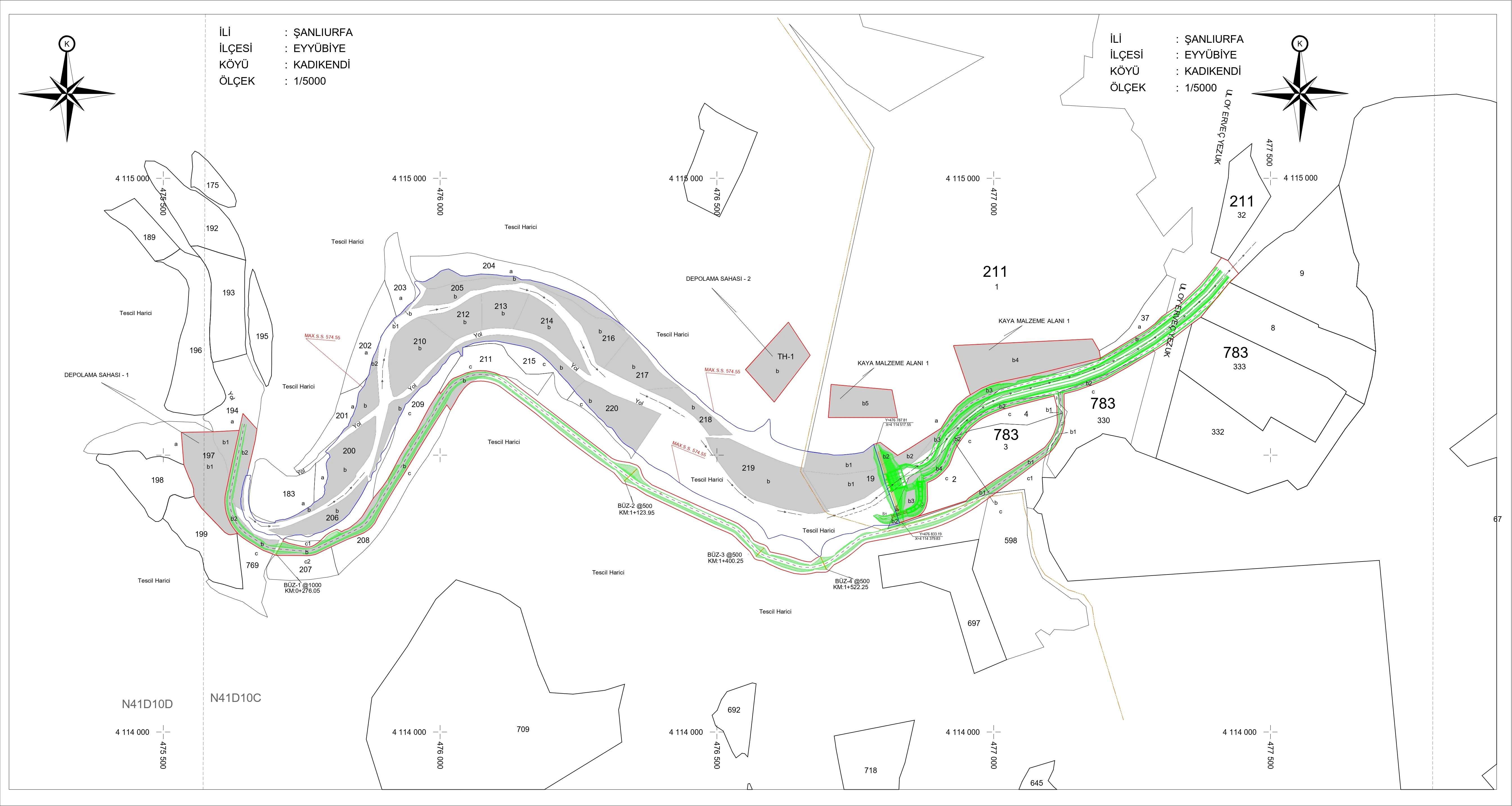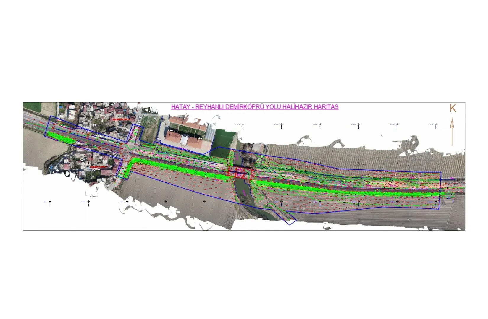 Within the scope of the work, relay projects will be prepared for the existing provincial road due to the dam lake. The dam, which is under construction, currently has a service road serving to reach the crest area. It is planned to improve the standards of the service road and use it as a new provincial road. For this reason, when purchasing maps, the works completed on the existing service road (walls, culverts, supported slopes, cutting ditches, fillings, etc.) must be recorded on the map. In some areas, deformations have been observed in existing productions, and it is important to show the existing productions in detail on the map in order to decide on the repair/demolition and/or remanufacturing of the productions.